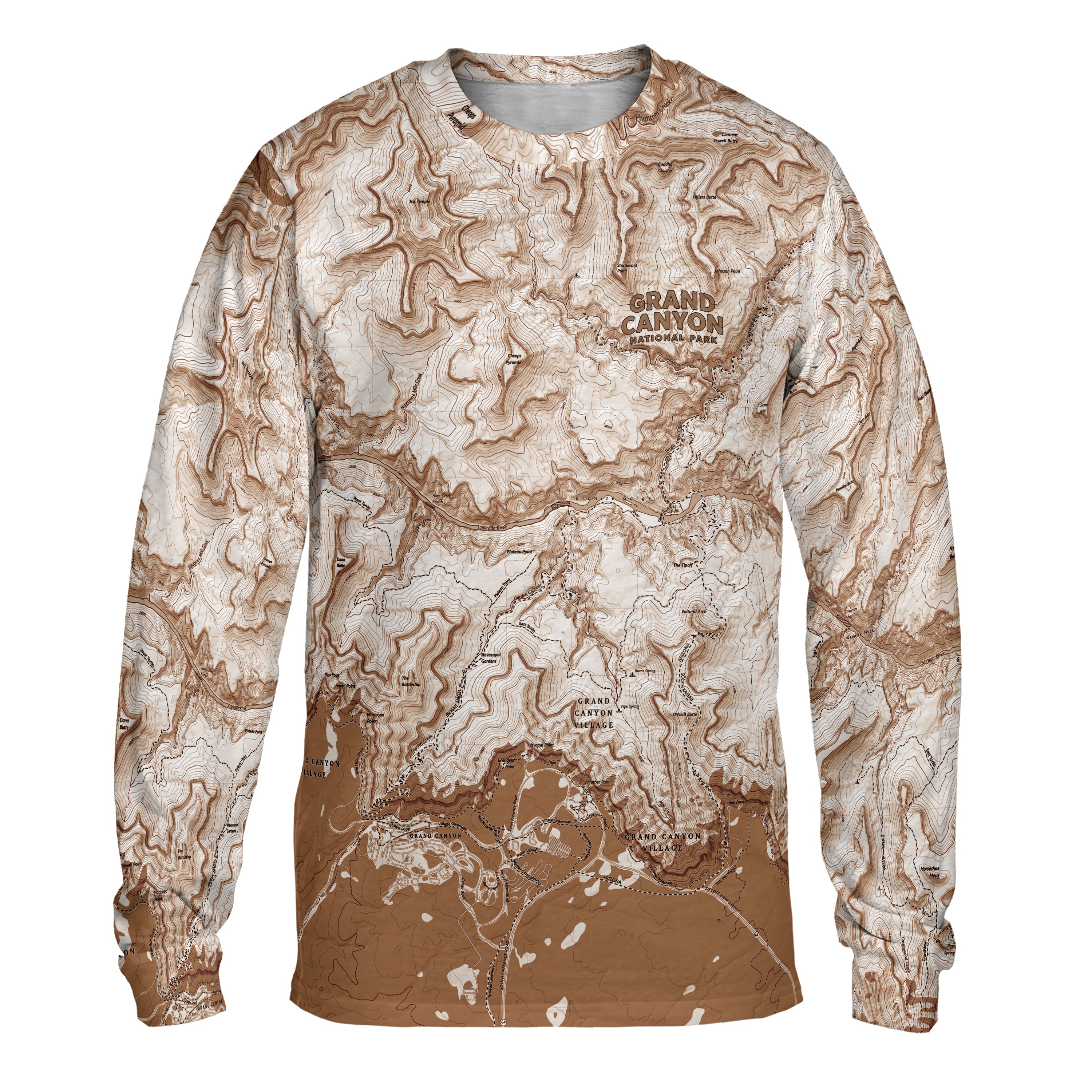 This long-sleeve tee features the Grand Canyon’s South Rim, mapped around Grand Canyon Village and the stretch of canyon most visitors explore. The design blends clear cartography with a color overlay, giving you a view that feels both familiar and fresh. It’s a lightweight, comfortable layer that dries quickly, holds its shape, and stays soft through regular wear. Made for anyone who appreciates real places and the memories tied to them—whether you hiked the corridor, watched the sunrise from the rim, or simply stood in awe at the edge.