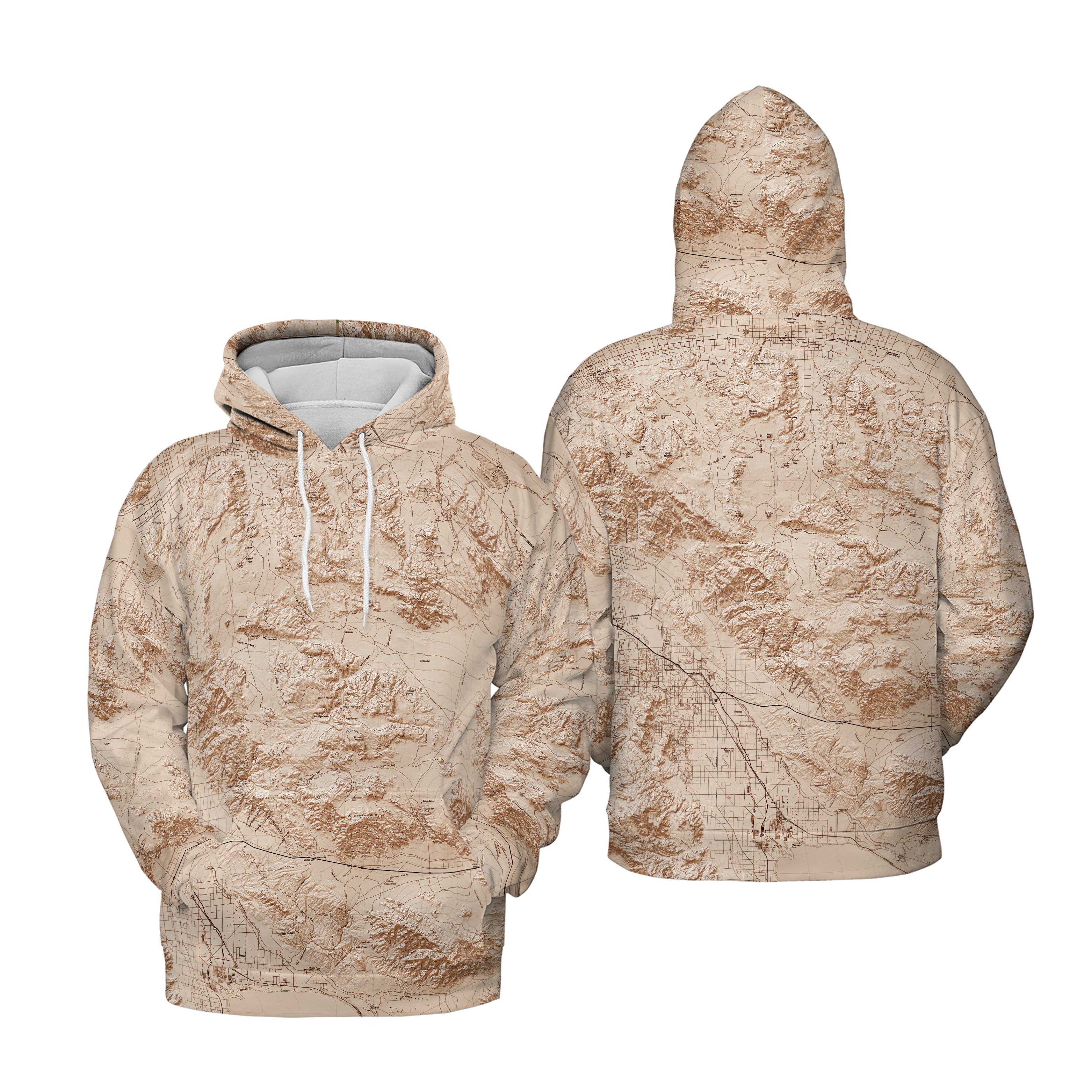 The Joshua Tree Mocha Brown Solid Map Lightweight Hoodie Sweatshirt