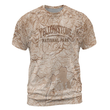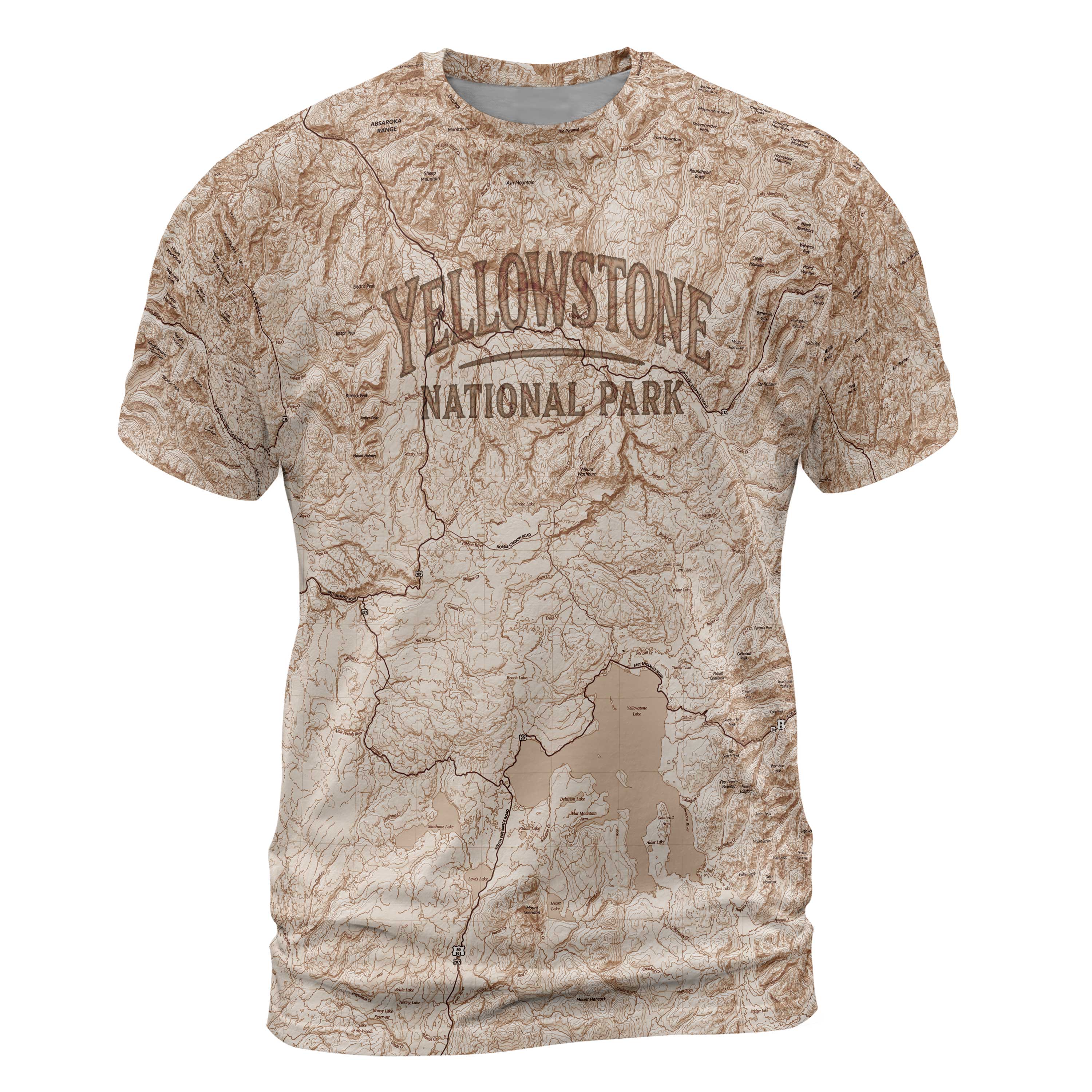 Yellowstone is a place where nearly everything moves—geysers, wildlife, rivers, and even the ground beneath your feet. This tee maps the familiar loops and landmarks: Hayden Valley, Old Faithful, the Lamar, the canyon’s colorful walls, and the long roads that tie it all together. Anyone who’s waited with a crowd for a geyser to erupt or watched bison cross the road with no hurry at all will recognize the terrain.