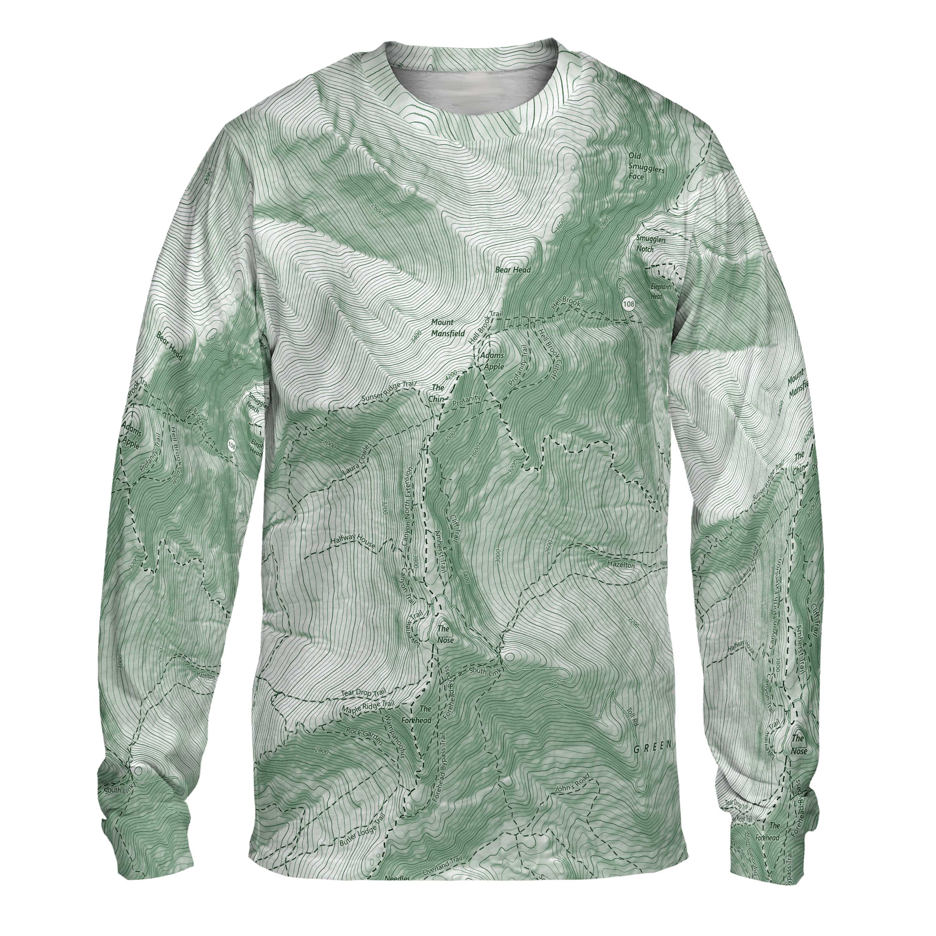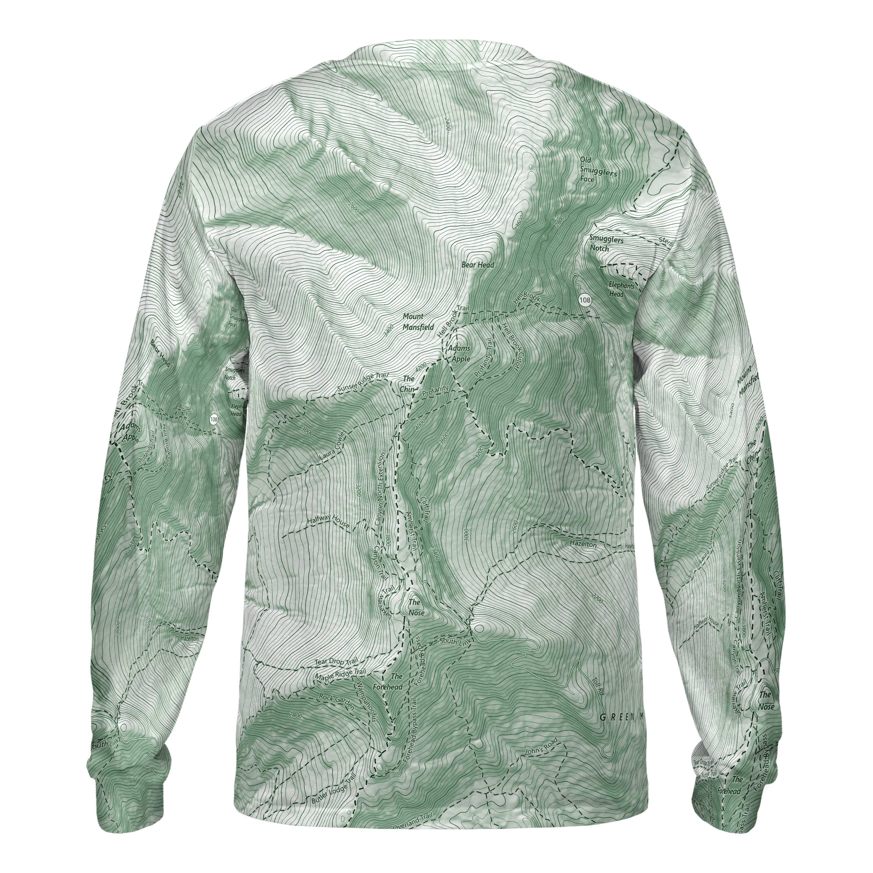 Mount Mansfield rises above Vermont with a ridgeline unlike any other. From the forests at its base to the exposed alpine summit known as The Chin, the mountain stretches long and distinct against the northern sky. This long-sleeve performance tee reflects that terrain, tracing the arc of the ridge, the climb along Sunset Ridge, and the rugged path of the Long Trail as it reaches the highest point in the state. Anyone who’s stepped onto open ledge, felt the wind sweep across the alpine tundra, or looked out toward Lake Champlain and the Adirondacks will recognize the lines in this design.