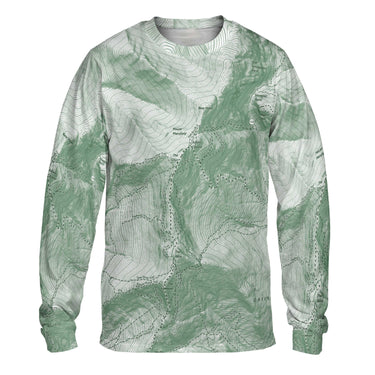 The Mount Mansfield Sage Green Solid Map Long Sleeve Performance Tee