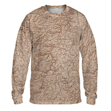 The Big South Fork Mocha Brown Solid Map Long Sleeve Performance Tee