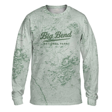Big Bend rewards people who don’t mind going out of their way. Desert floor, river canyons, rugged mountains—it’s all here, stitched together by long roads and star-filled nights. This tee captures that layout, from the winding Rio Grande to the switchbacks climbing into the Chisos. Anyone who’s paddled Santa Elena, hiked the South Rim, or watched a distant thunderhead build over the basin will see familiar lines on this map.