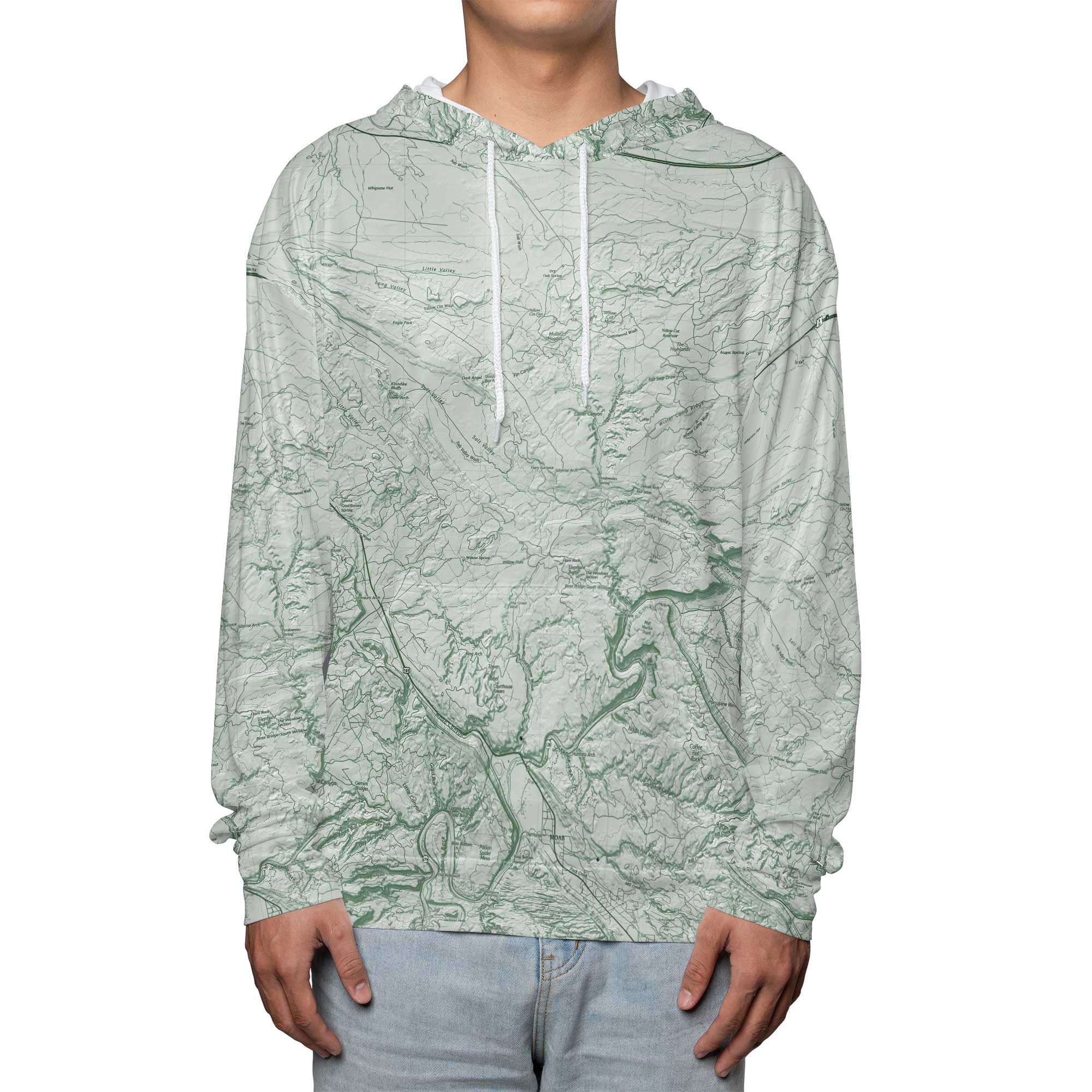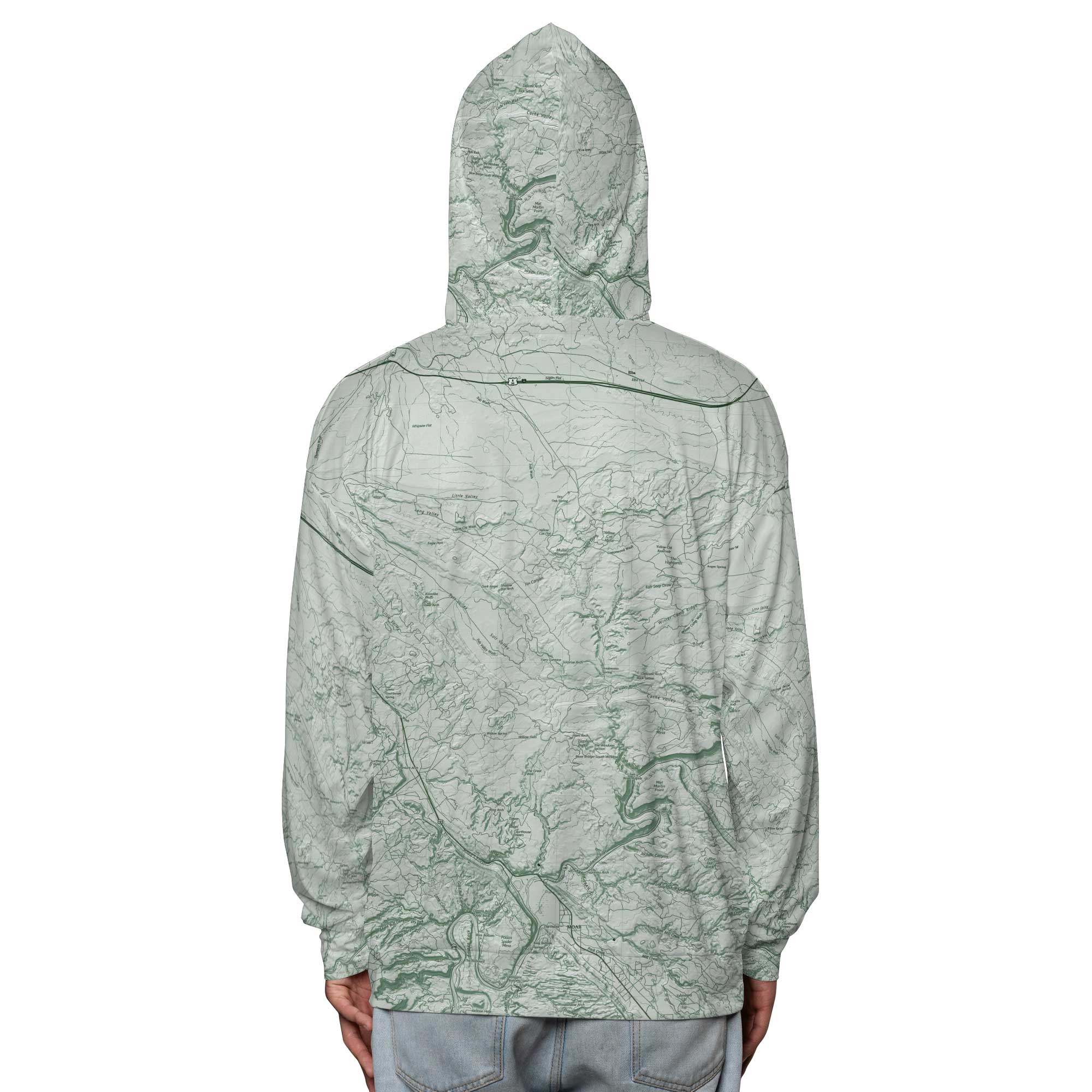 The Arches Sage Green Solid Map Hooded Performance Shirt
