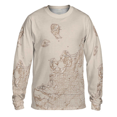 Sleeping Bear Dunes Mocha Brown Solid Map Long Sleeve Performance Tee