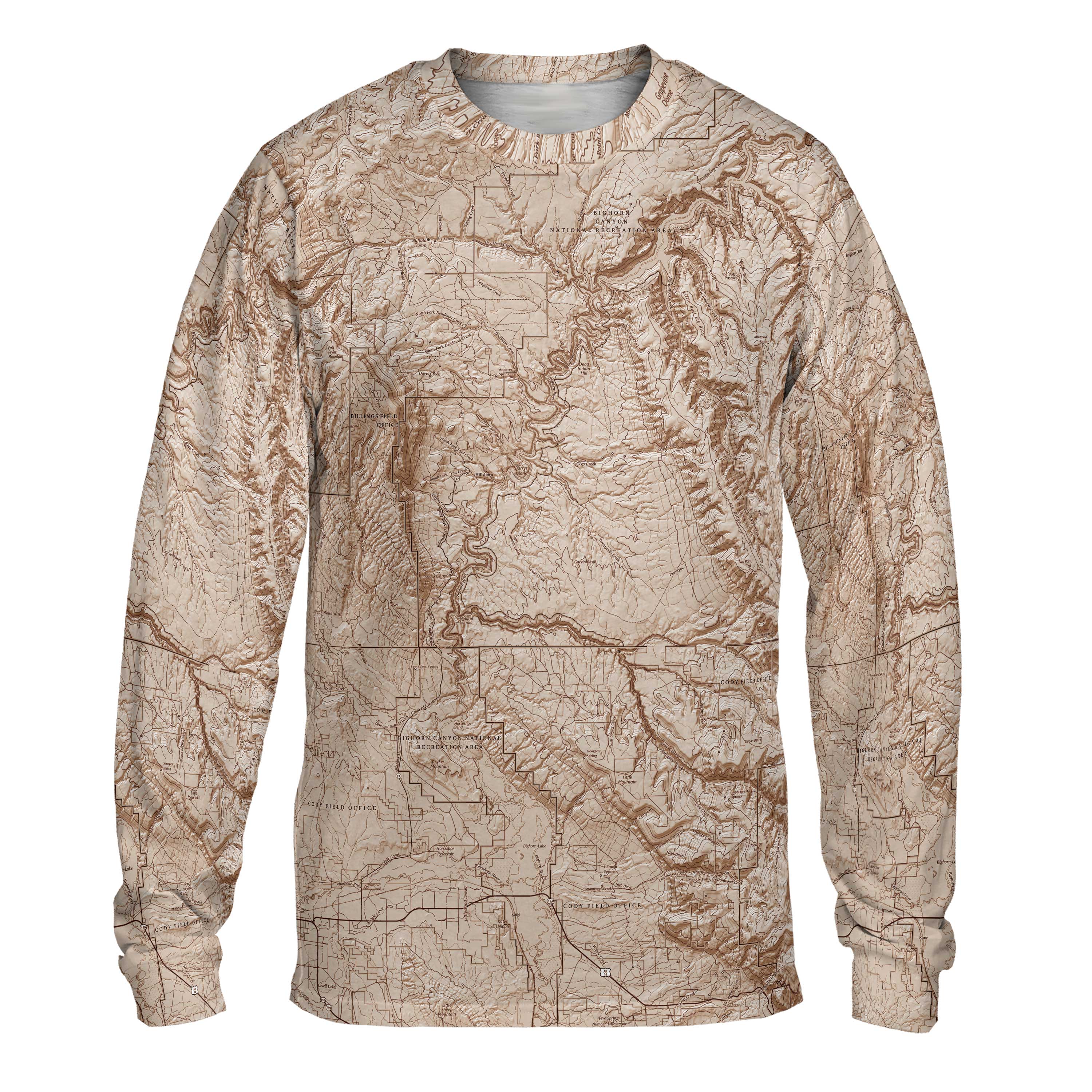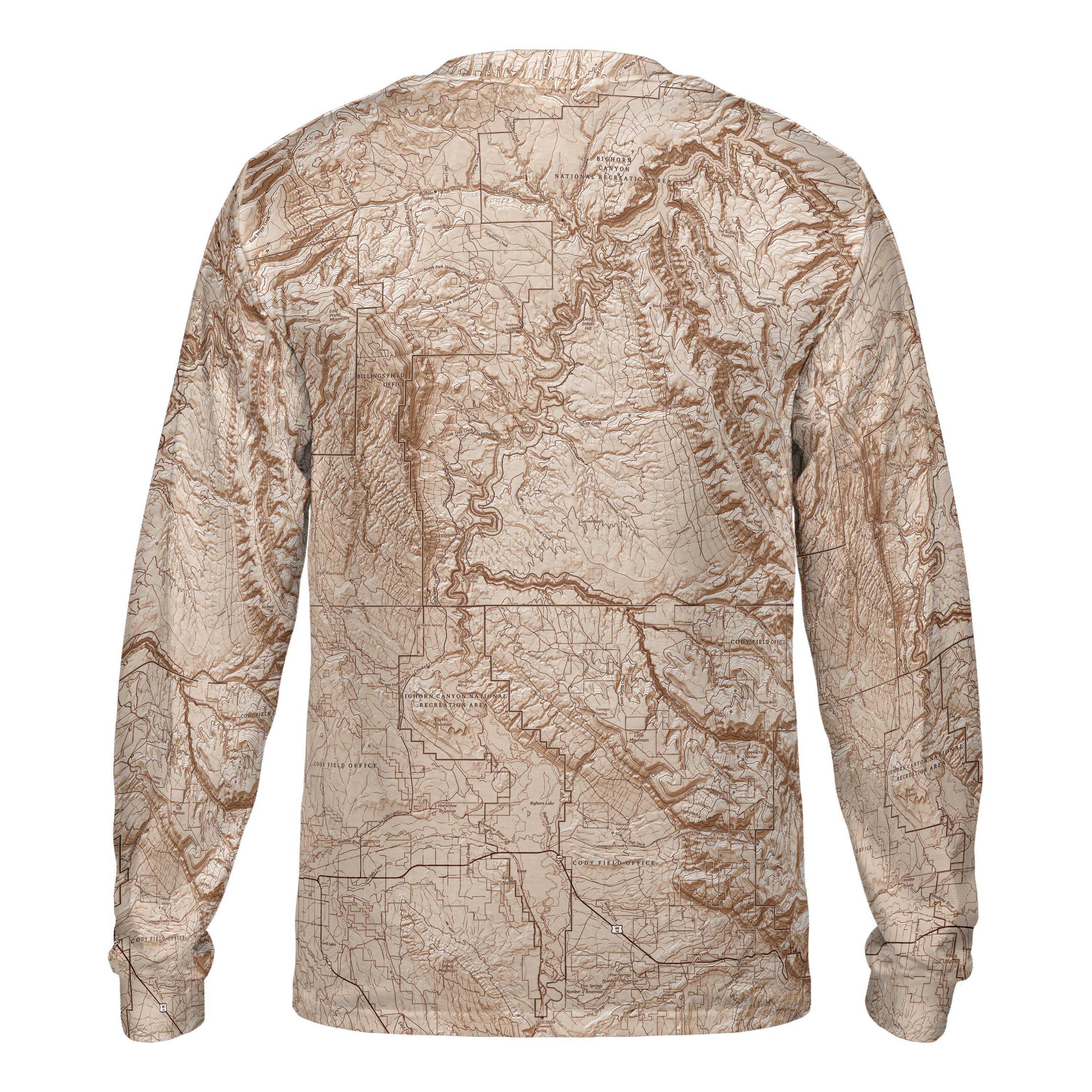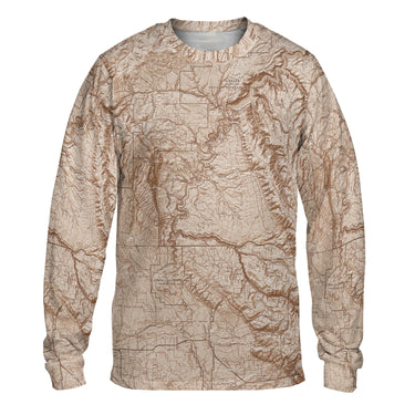 The Bighorn Canyon Mocha Brown Solid Map Long Sleeve Performance Tee