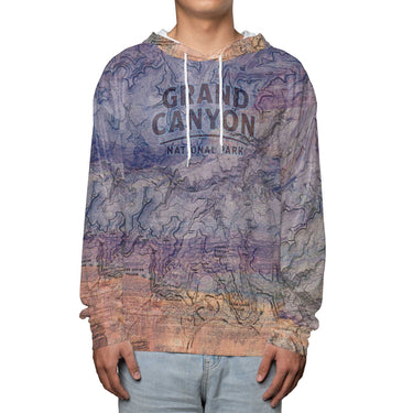 This long-sleeve hooded performance shirt features a Vista edition of the Grand Canyon’s South Rim, mapped around Grand Canyon Village and the stretch of canyon most visitors explore. The design blends clear cartography with a scenic color overlay, giving you a view that feels both familiar and fresh. It’s a lightweight, comfortable layer that dries quickly, holds its shape, and stays soft through regular wear. Made for anyone who appreciates real places and the memories tied to them—whether you hiked the corridor, watched the sunrise from the rim, or simply stood in awe at the edge.