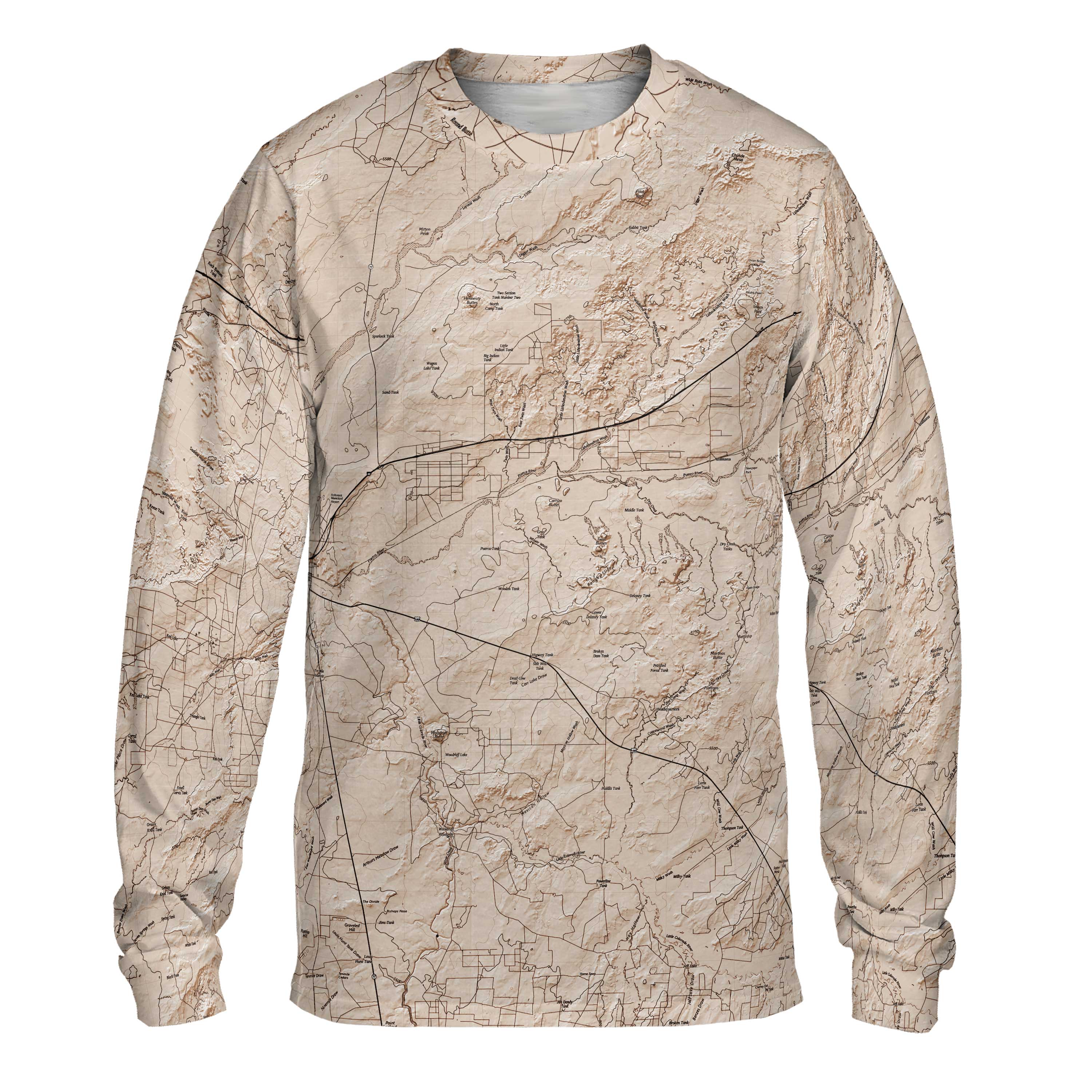 The Petrified Forest Mocha Brown Solid Map Long Sleeve Performance Tee