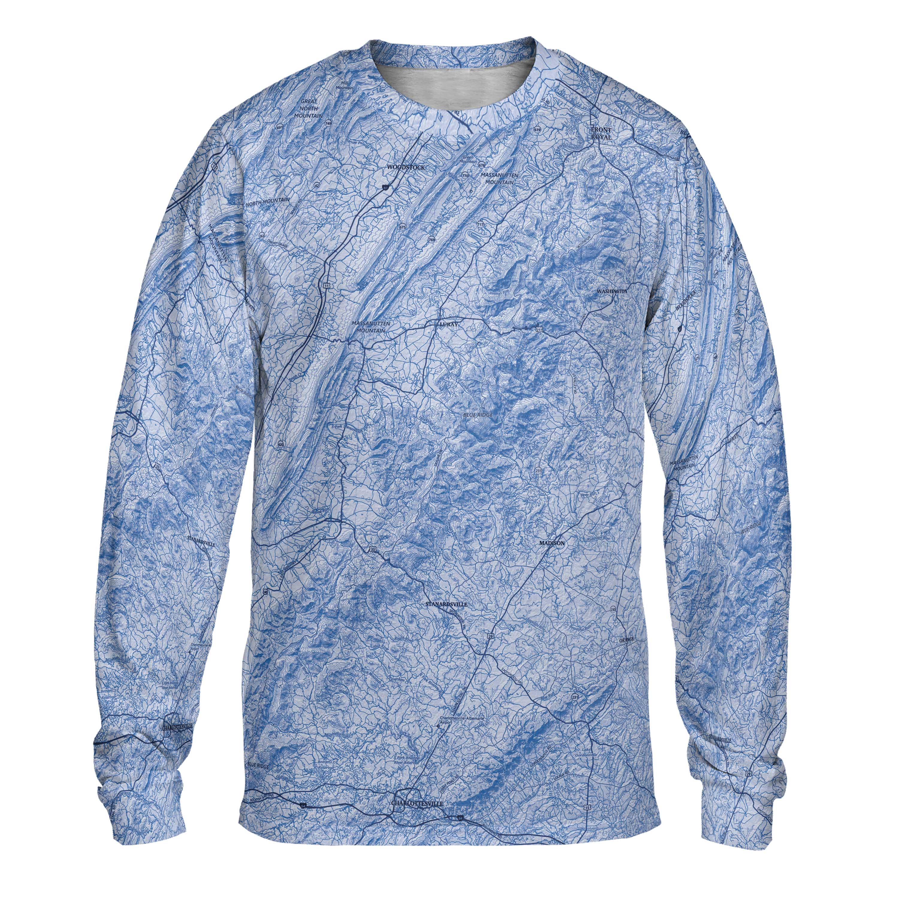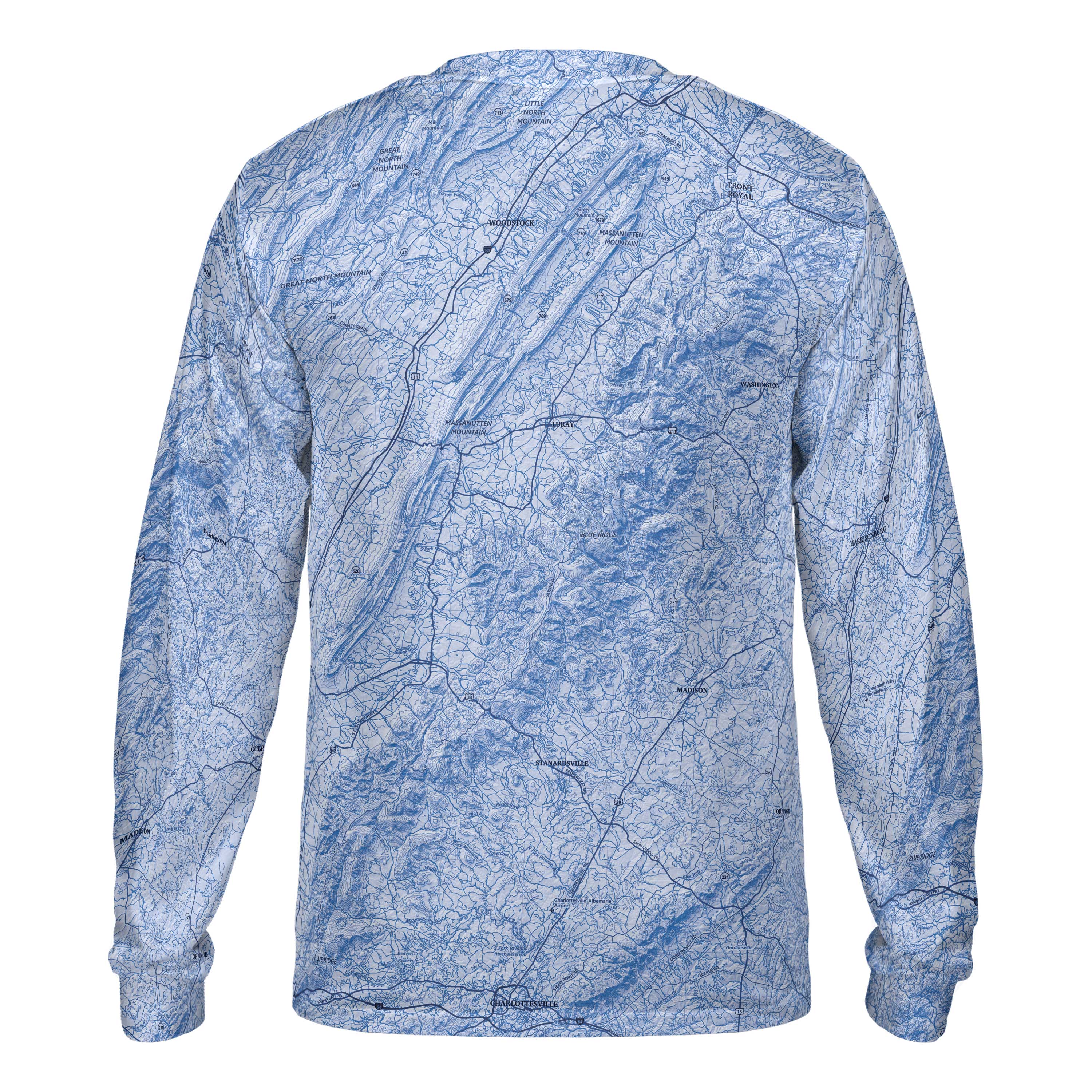 The Shenandoah Solid Map Sky Blue Long Sleeve Performance Tee